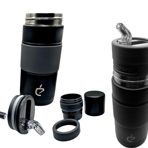 Yerbomos to innowacyjne połączenie trzech akcesoriów do yerba mate – matero, bombilli i termosu. Umożliwia wygodne picie yerba mate w podróży, w biurze czy w domu, bez potrzeby noszenia oddzielnych elementów.