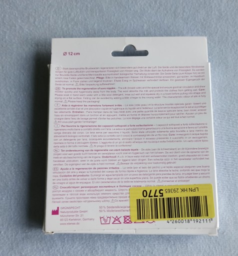 Obolałe, popękane brodawki najlepiej regenerują się bezpośrednio w powietrzu. Ale nie zawsze jest to możliwe w życiu codziennym. Dzięki wkładkom laktacyjnym ELANEE z jedwabnej wełny brodawki mogą „oddychać” i regenerować się pod ubraniem. Delikatny jedwab i otwarta dzianina zapewniają dobry dopływ powietrza. Warstwa chłonna wykonana z wełny chroni pranie. Dla korzystnego karmienia piersią pomimo intensywnie eksploatowanych brodawek sutkowych.