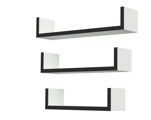 Półki zmontowane, gotowe do zawieszenia. Elementy są ze sobą klejone na stałe, dzięki czemu unikamy widocznych wkrętów i zaślepek.