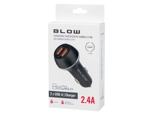 Ładowarka ma wbudowane dwa gniazda USB-A co pozwala na podłączenie kabla i ładowanie dwóch urządzeń jednocześnie wykorzystując tylko jedno gniazdo zapalniczki samochodowej.