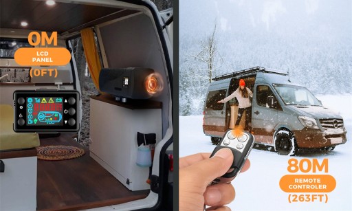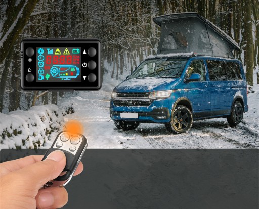 - Dzięki cyfrowemu monitorowi LCD możesz wyraźnie zobaczyć stan pracy grzejnika powietrznego na olej napędowy. Możliwość wstępnego nagrzewania za pomocą zdalnego sterowania pozwala na komfortowe wejście do pojazdu.