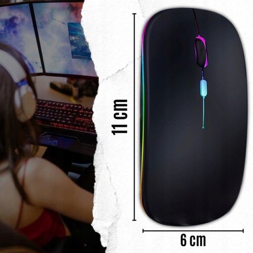 LEKKA CICHA MYSZKA BEZPRZEWODOWA LED RGB – IDEALNA DO LAPTOPA, KOMPUTERA, BIURA