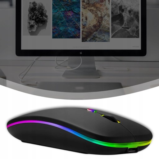 LEKKA CICHA MYSZKA BEZPRZEWODOWA LED RGB MYSZ DO LAPTOPA KOMPUTERA BIURA