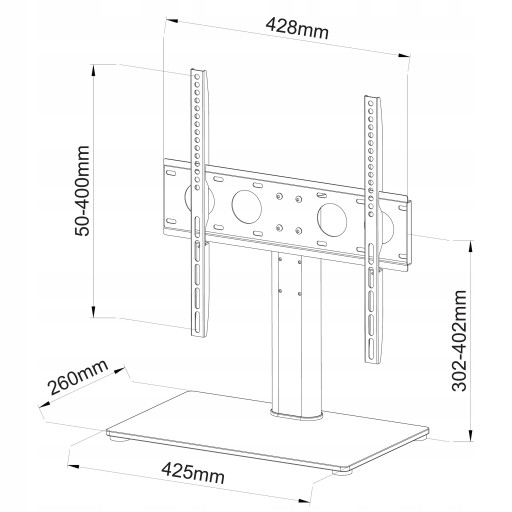 - regulacja wysokości telewizora: 302~402 mm (środek płyty VESA)