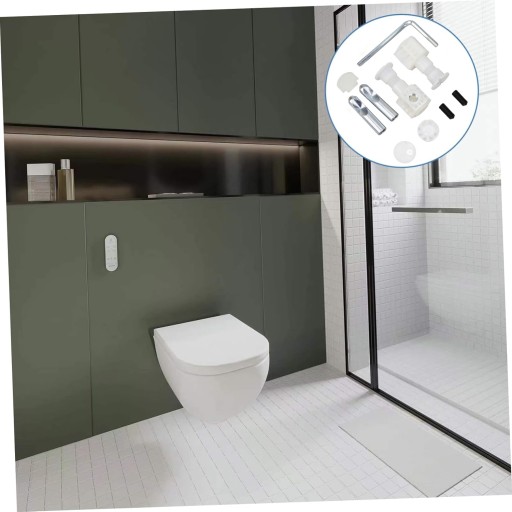 Zestaw elementów mocujących ułatwiających montaż toalet i bidetów.