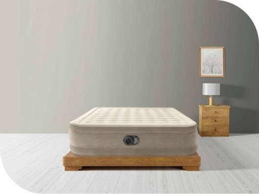 Materac dmuchany Ultra Plush marki Intex jest mistrzem wygody. Dzięki dwuwarstwowej konstrukcji górnej powierzchni, zapewnia gładką i przyjemną w dotyku przestrzeń do spania. Pokryty delikatnym welurem, który jest nie tylko miękki, ale także łatwy w czyszczeniu.