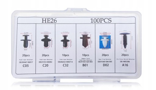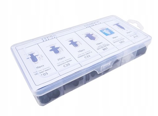Zestaw spinek to produkt, który idealnie sprawdzi się w Twoim aucie. Obejmuje on 6 najpopularniejszych rodzajów klipsów, które są powszechnie stosowane w większości samochodów dostępnych na rynku. Zostały one wykonane z mocnego i trwałego tworzywa sztucznego, co zapewnia długie oraz bezproblemowe użytkowanie, bez obaw o korozję elementów, niezależnie od warunków atmosferycznych. Całość została umieszczona w etui z dedykowanymi przegródkami, co pozwala na wygodne przechowywanie spinek.