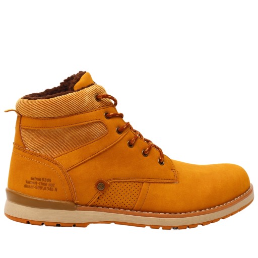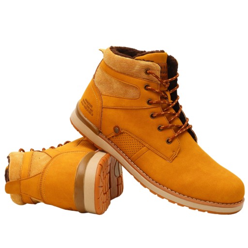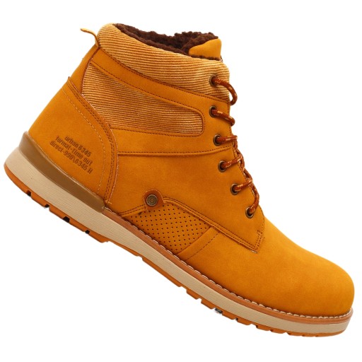 Buty męskie zimowe ocieplane, w kolorze jasnym brązowym wykonane ze świetnej jakości materiałów. Wiązanie na sznurówki reguluje tęgość obuwia. Wysoka cholewka zapewnia stabilizację. Podeszwa jest klejona co zapewnia długą wytrzymałość. W całości jest ocieplony mięciutkim futerkiem, doskonały na chłodniejsze dni. Antypoślizgowa podeszwa z bieżnikiem poprawia amortyzację stopy.