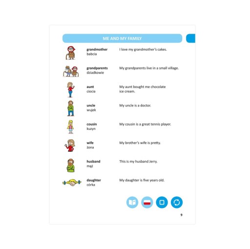 Ten niezwykły Słownik to doskonałe narzędzie do nauki angielskiego słownictwa. Wszystkie teksty wypowiadane są przez native speakerów, więc bez trudu nauczycie się poprawnej wymowy słów. Słownik jest podzielony na 11 rozdziałów tematycznych, w których znajdziecie ponad 1000 angielskich wyrazów i zwrotów. Słowa są przedstawione za pomocą obrazków, aby można było je łatwiej zapamiętać.