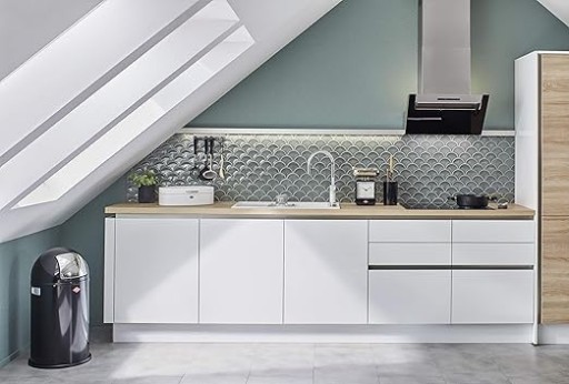 - Śmieci są wrzucane przez dużą klapę ze stali nierdzewnej. Zapewnia bezzapachową utylizację śmieci