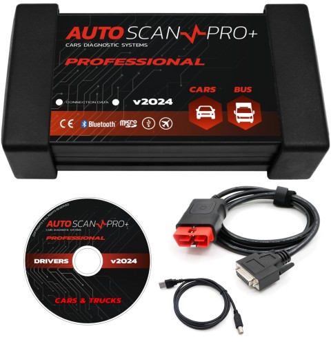 - AUTOSCAN PRO+ FULL PROFESSIONAL v.2024 (Przeznaczenie : Samochody osobowe, dostawcze, ciężarowe, autobusy, naczepy) oraz wersję z dodatkowymi adapterami.