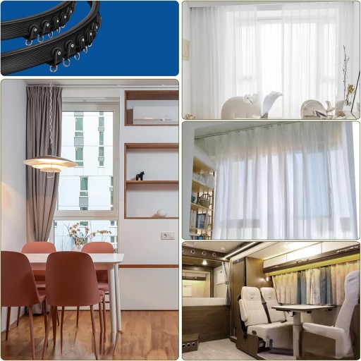 ⏺️⏺️-Całkowita długość zakrzywionego toru z miękkimi oknami wynosi 5 metrów/16,4 stopy. Można przedłużyć tor, łącząc końce w jeden ciągły tor lub dostosować tor do zasłony do odpowiedniego rozmiaru za pomocą piły do metalu o drobnych zębach.