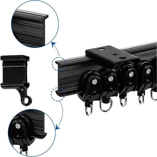 ⏺️⏺️-Akcesoria w postaci rolek prowadzących i zdejmowanych wsporników sufitowych mają na celu pomóc w sprawnym i łatwym montażu karnisza oraz prostym w wykonaniu.