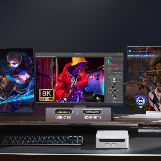 N4 obsługuje wyświetlanie 8K 60PFS przez HDMI*2 Poczwórny wyświetlacz pozwala łatwo rozszerzyć przestrzeń roboczą.