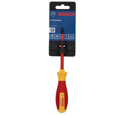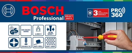 - Przy użyciu wkrętaka VDE PZ 1 x 100 Bosch Professional można dokręcać i odkręcać wkręty oraz śruby, nawet w razie przypadkowego kontaktu z elementami pod napięciem.