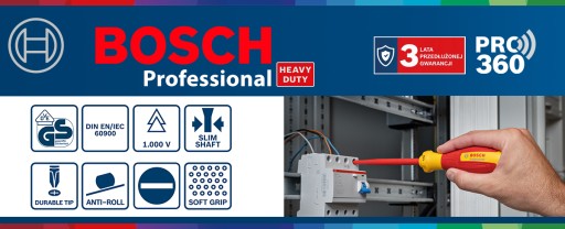 - Wkrętaki VDE Bosch Professional mają konstrukcję antypoślizgową, która zapobiega ześlizgnięciu się narzędzia podczas pracy. Ponadto profil i rozmiar są dobrze widoczne w wielu miejscach na rękojeści.