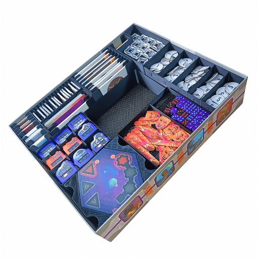 - Możliwość przechowywania gry w poziomie i w pionie – po zamknięciu wieka nic się nie wysypuje z pojemników