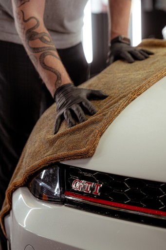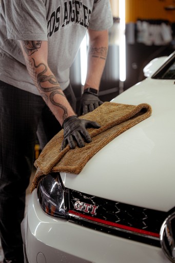 - Po myciu auta połóż ręcznik na mokrej powierzchni i przeciągaj bez nacisku.