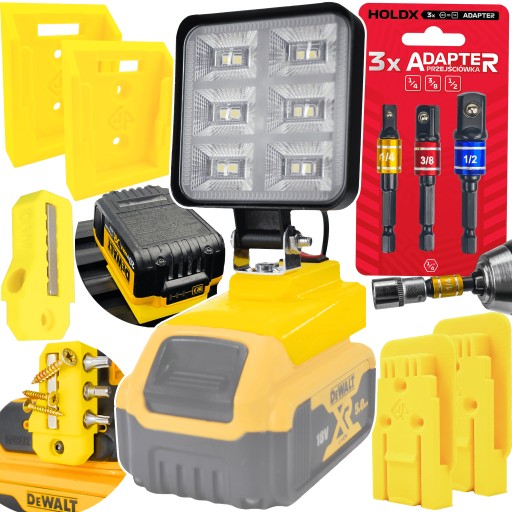 PREZENT DLA FANA DEWALTA ZESTAW ADAPTERÓW LAMPA UCHWYTY NA NARZĘDZIA I BATERIE