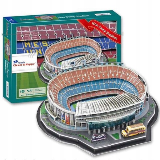 Puzzle przestrzenne wykonane ze specjalnej pianki, które po złożeniu tworzą kolorowy stadion FC Barcelony, będący odwzorowaniem rzeczywistego stadionu klubowego. Każdy element jest precyzyjnie wykonany, aby można go było złożyć w idealnie harmonijny model. Do składania trójwymiarowych modeli nie potrzeba żadnych przyborów, wystarczy wyjąć z arkusza kawałki piankowych puzzli i rozpocząć budowę. Zabawka rozwija wyobraźnię przestrzenną oraz zdolności manualne u dzieci.