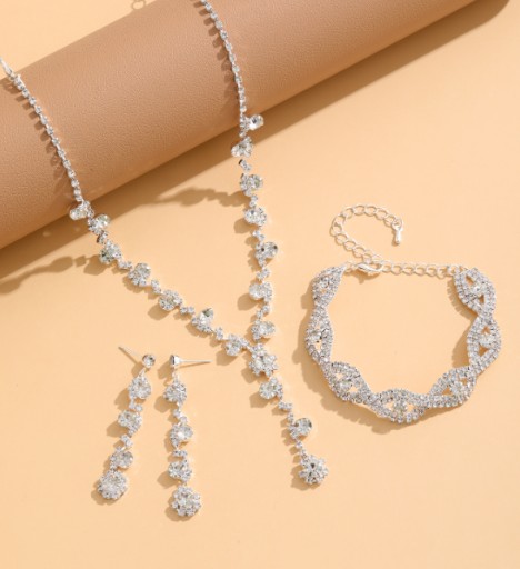✨Zestaw Biżuterii Ślubny – Kolczyki, Naszyjnik, Bransoletka z Cyrkoniami