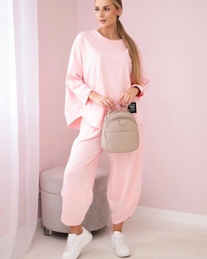to połączenie elegancji i wygody, które idealnie pasuje do wielu okazji. Ta tkanina jest nie tylko miękka i przyjemna w dotyku, ale także pięknie się prezentuje. Bluza to doskonały element garderoby zarówno na co dzień, jak i na specjalne okazje. Możesz nosić ją solo lub zestawić z inną częścią garderoby, tworząc niezwykle stylowy outfit. Spodnie to doskonałe uzupełnienie kompletu. Ich luźny krój pozwala na swobodę ruchów, co sprawia, że są one nie tylko stylowe, ale także bardzo wygodne.