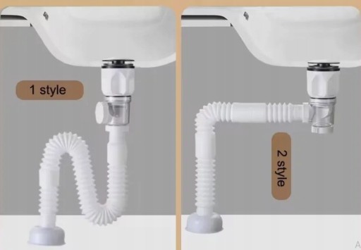 Elastyczny i giętki syfon do umywalki ze zbiornikiem.