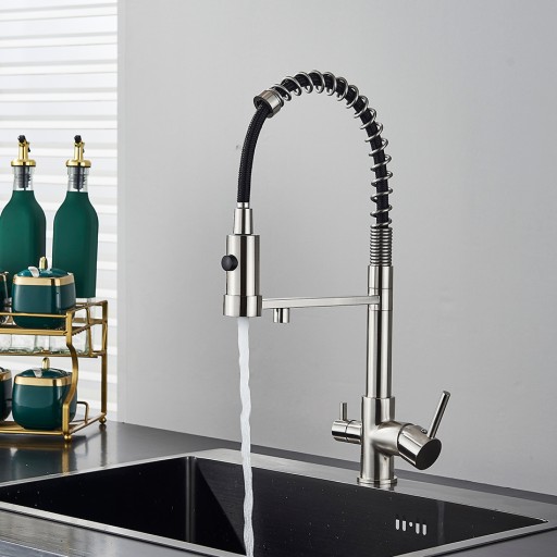 Zastosowanie kranu dwuobwodowego (baterie trójdrożne) umożliwia podłączenie filtra do wody bez konieczności montażu (wiercenia) osobnego kranu. W jednym kranie mamy dwa niezależne obiegi, jeden dla wody zimnej i gorącej, a drugi do wody filtrowanej. W naszej ofercie znajdziesz: baterie dwuobwodowe z podłączeniem filtra do wody, krany trójdrożne z wyciąganą wylewką, baterie kuchenne z możliwością podłączenia wody filtrowanej.