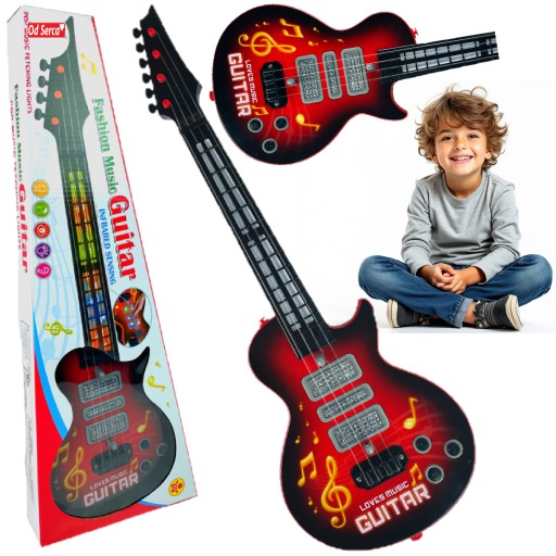 GITARA ROCKOWA ELEKTRYCZNA ZABAWKA DLA DZIECI ŚWIECI GRA STRUNY INSTRUMENT