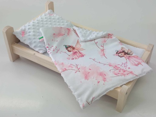 Zestaw pościeli jest dwustronny, a jego wypełnienie to antyalergiczna, puszysta włóknina, która zapewnia komfort snu. Kolorowe tasiemki wszyte w kołderkę i ręcznie robione kokardki doszyte do poduszki dodają całości uroku i sprawiają, że zestaw wygląda wyjątkowo.