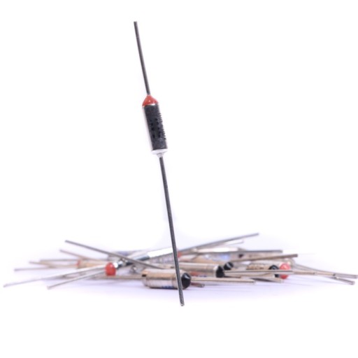 Bezpiecznik termiczny z wyprowadzeniami osiowymi. Wykonany z hermetycznej metalowej obudowy. Aktywacja bezpiecznika następuje, gdy temperatura otoczenia przekroczy punkt topnienia elementu zabezpieczającego.