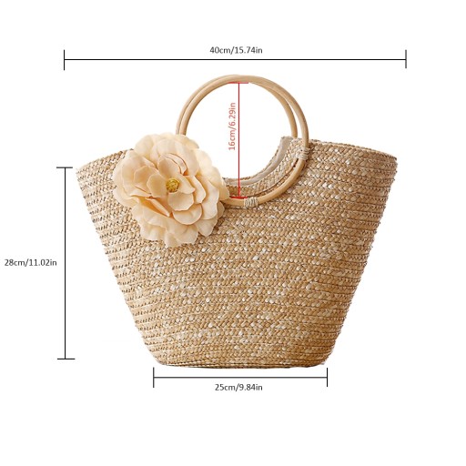 СОЛОМНАЯ СУМКА ПЛЯЖНАЯ КОРЗИНА С ДЕРЕВЯННЫМИ РУЧКАМИ