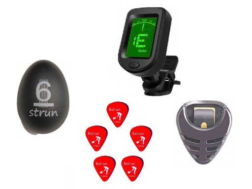 - Pudełko na kostki z taśmą samoprzylepną umożliwiającą przyczepienie kostek do gitary
