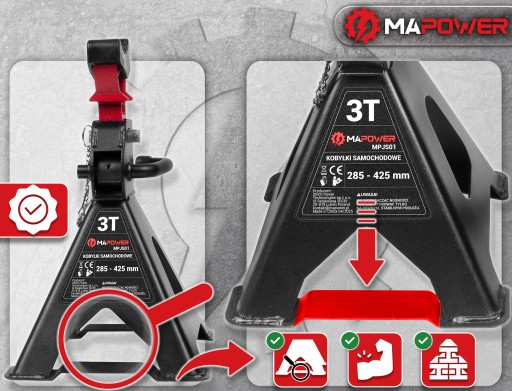 KOBYŁKI SAMOCHODOWE PODPORY WARSZTATOWE— ZESTAW 2 SZTUK - 3 TONY MAPOWER