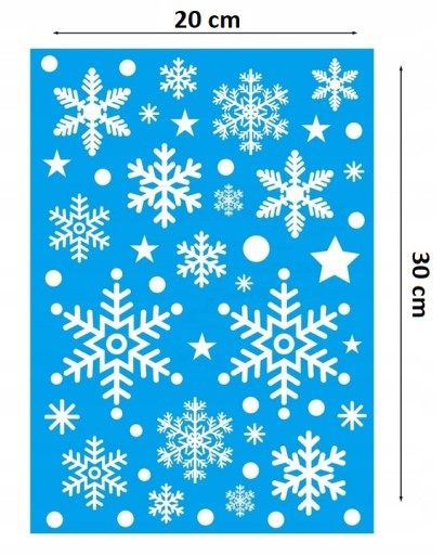 - śnieżynki w różnych rozmiarach - cena dotyczy 1 arkusza z różnymi wielkościami naklejek.