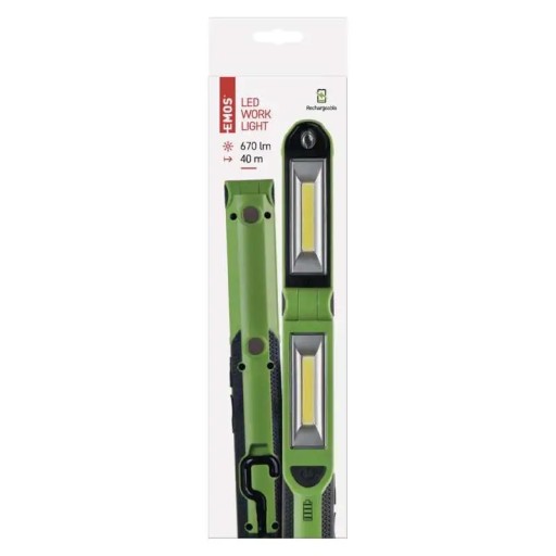 Lampa warsztatowa cenionej firmy Emos została wyposażona w dwa mocne źródła światła - 2 x 3W LED. Produkt ma składaną obudowę, co ułatwia ustawienie padanie światła pod konkretnym kątem.