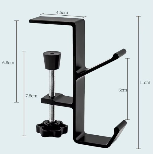 WIESZAK UCHWYT NA SŁUCHAWKI TORBĘ PLECAK METALOWY CZARNY DO BIURKA BLATU