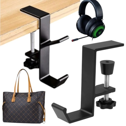 ✅ Praktyczny wieszak do bezinwazyjnego montażu na biurku, stole, blacie