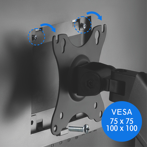 Uchwyt jest kompatybilny ze standardem VESA o rozstawie 75 x 75mm i 100 x 100mm, co zapewnia łatwość instalacji.