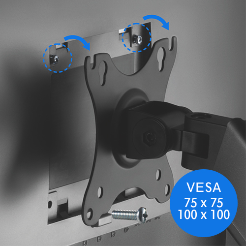 Uchwyt jest kompatybilny ze standardem VESA o rozstawie 75 x 75mm i 100 x 100mm, co zapewnia łatwość instalacji.