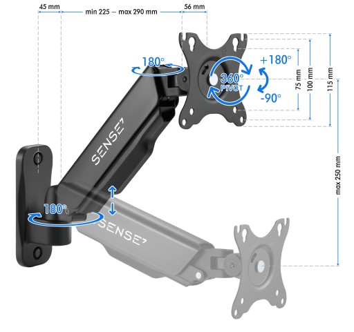 Uchwyt ścienny na monitor Ramię do monitora do ściany 17"-32" Sense7
