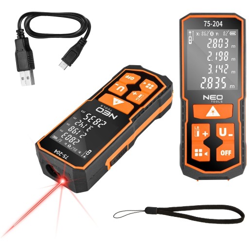 Dalmierz laserowy, 75-204, NEODalmierz laserowy marki NEO (nr ref. 75-203) jest wysokiej jakości urządzeniem służącym do pomiaru odległości, pola powierzchni, objętości. Funkcje dalmierza pozwalają dokonywać pomiarów pośrednich (przy pomocy twierdzenia Pitagorasa) oraz pomiarów ciągłych dodawania i odejmowania, pomiar maksymalny i minimalny, możliwość pomiaru od początku, środka i końca urządzenia Dodatkowo urządzenie wyposażone jest w automatyczną poziomnicę pozwalającą na bieżąco odczytywać kąt położenia urządzenia. Posiada pamięć ostatnich 30 pomiarów. Maksymalny zasięg urządzenia wynosi od 0,05 – 60 m a dokładność pomiaru +/- 2 mm. Produkt jest przydatny w budownictwie, geodezji, przy projektach technicznych, a także w domu. Urządzenie posiada klasę szczelności IP54 . Dalmierz wyposażony został w czytelny ekran i regulowaną głośność. Zasilane :2xAA NI-MH akumulatory, lub 2 baterie alkaliczne typu AA. Produkt posiada certyfikat CE. Marka NEO spełnia oczekiwania profesjonalistów.