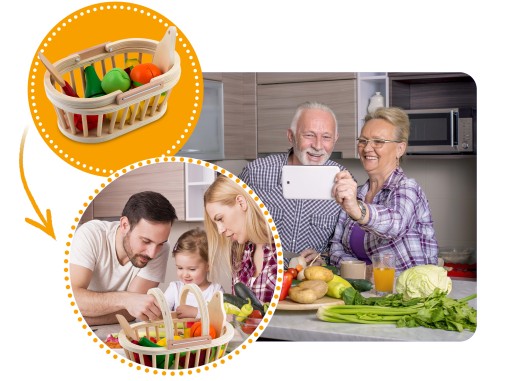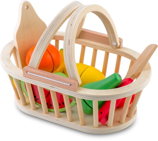 - Dołączony drewniany koszyk ułatwia przechowywanie i przenoszenie zestawu. Umożliwia zabawę w sklep.