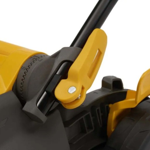 Nowe uchwyty na kierownicy kosiarki umożliwiają szybkie składanie i łatwe przechowywanie kosiarki.