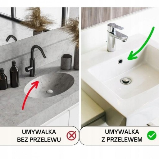 Jest to niewielkich rozmiarów otwór zlokalizowany w górnej części pod samym kranem. Zapobiega on przelaniu się wody w momencie, w którym chcemy napełnić umywalkę. To, czy zostanie zakupiony korek bez przelewu czy z przelewem uzależnione jest więc od tego, jakim konkretnie modelem zbiornika dysponujemy.