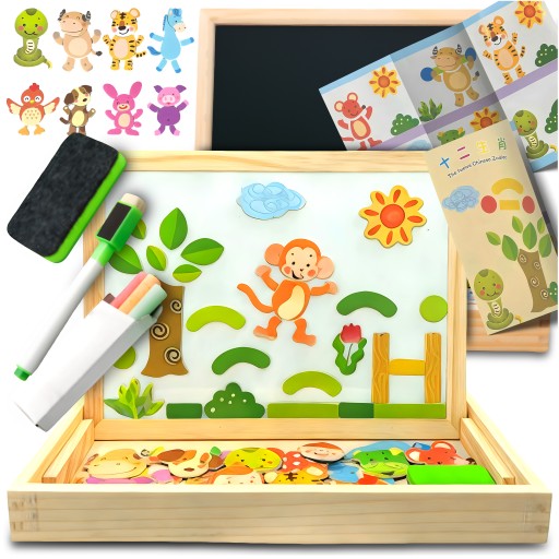 Dodatkowo tablica jest również magnetyczna, dzięki czemu można umieszczać na niej magnesy znajdujące się w zestawie.
