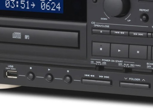 Urządzenie obsługuje różnorodne tryby odtwarzania plików z pamięci USB, w tym powtarzanie, losowe i programowe, co pozwala na dostosowanie odtwarzania do indywidualnych preferencji. Funkcja zsynchronizowanego startu sprawia, że nagrywanie z kaset lub płyt CD na napęd USB staje się jeszcze prostsze i bardziej intuicyjne.