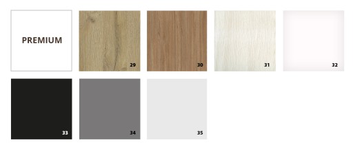 29. Dąb premium 30. Dąb holenderski premium 31. Dąb jasny premium 32. Biel premium 33. Carny premium 34. Grafit premium 35. Silver premium