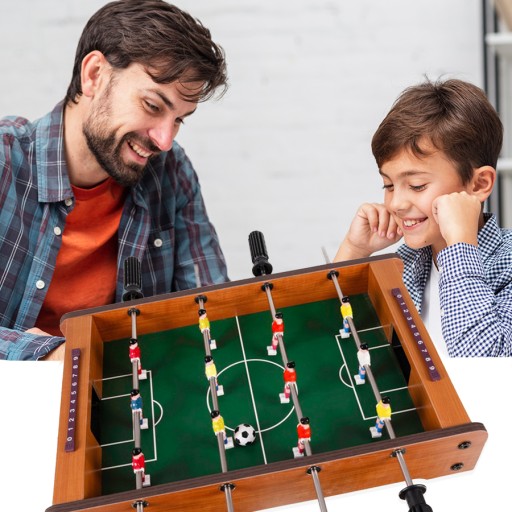Drewniany stół nawiązuje do klasycznych i tradycyjnych gier w piłkarzyki. Jego estetyka i wykończenie dodają mu elegancji i atrakcyjności. Ponadto jest on solidny i trwały, nawet podczas intensywnej gry.