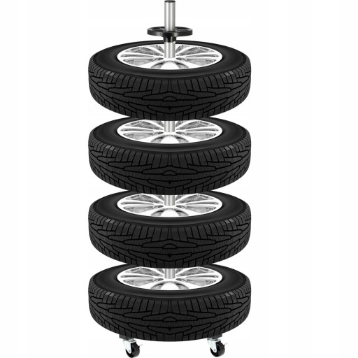 Mobilny stojak przeznaczony do przechowywania kół samochodowych.